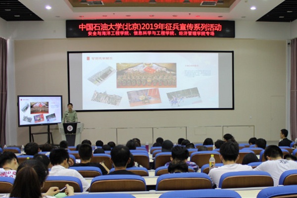 為進一步宣傳國家征兵政策,鼓勵新時代大學(xué)生以青春熱血報效祖國,5月29日,中國石油大學(xué)經(jīng)濟管理學(xué)院、安全與海洋工程學(xué)院以及信息科學(xué)與工程學(xué)院聯(lián)合舉辦了2019年征兵宣講活動。北京市昌平區(qū)武裝部部長陳軍,中國石油大學(xué)學(xué)生工作部副部長、武裝部副部長戴兵,經(jīng)濟管理學(xué)院黨委副書記沈慶寧,安全與海洋工程學(xué)院黨委副書記趙凱,信息科學(xué)與工程學(xué)院黨委副書記于迎輝,在校退役大學(xué)生代表,各學(xué)院征兵工作聯(lián)絡(luò)人以及40余名學(xué)院應(yīng)征青年代表參加了本次活動。
