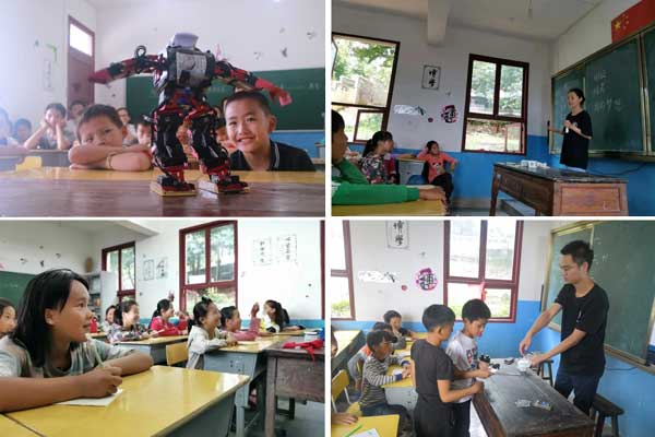 支教團成員為章漢小學學生講授了形式多樣、內容豐富的課程。在趣味數學課上,用撲克牌作為教具進行教學,設置了搶答積分環節,讓學生在歡快的數學游戲中理解了原本枯燥的數學知識;在英語課上,結合學生沒學過英語的情況,以英文歌曲的形式教學生學英文字母;在舞蹈課上,帶著學生學習現代舞蹈和民族舞蹈,并共同跳起當地的苗族和侗族舞蹈;在美術課上,教學生制作藝術帽與流體畫,學生將“中國”“中國石油大學”等字和美麗的圖案寫在或畫在帽子上并戴著上下學,將愛國愛石油的情懷用畫筆定格;在音樂課上,教學生學習中國石油大學(北京)的校歌《我為祖國獻石油》,學生在慷慨激昂的旋律中感悟“實事求是,艱苦奮斗,愛國奉獻,開拓創新”的石大精神以及以“大慶精神、鐵人精神”為核心的石油精神;在體育課上,成立了章漢小學學生籃球隊,教授專業的籃球動作,分組進行了激烈的籃球比賽;機器人課上,展示了舞蹈機器人、螃蟹機器人,并設置了拼裝機器人環節,學生在小組分工合作的動手實踐中掌握了機器人的基礎知識。主題班會環節共分為三個主題,在“我有一個夢想”主題班會上,學生一一寫下了自己想做宇航員、設計師、走出大山上大學等美好的夢想,支教團成員鼓勵學生無論何時何地都要有追逐夢想的勇氣和信念;在“吟誦經典”推廣普通話主題班會上,支教團成員教大多是苗族和侗族的學生聲情并茂地朗誦詩歌《大山》,鼓勵他們誦讀經典提高文化素養,學好普通話,走出大山;在“傳承石油精神”主題班會上,支教團成員講述了鐵人王進喜的英雄事跡,介紹了石油人艱苦樸素、砥礪前行的精神,回顧了石大悠久歷史與“厚積薄發,開物成務”校訓的深刻內涵,激勵同學們努力學習,有機會要報考中國石油大學(北京),成長為石油石化行業專門人才,為石油行業發展作貢獻。