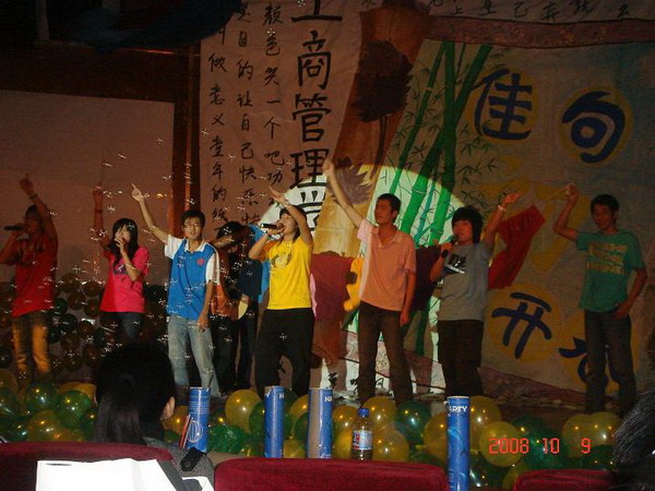 一段絢麗的舞蹈拉開了晚會的序幕,“脈動詩情溢,卷開佳句出”,工商管理學院迎新晚會正式啟航。魅力獨唱、深情對唱、火爆的街舞、柔情的民族舞……豐富多彩的節目展現了同學們的多才多藝。鋼琴,吉它等樂器的精湛演出則為觀眾帶來了心靈的寧靜與思考。相聲,話劇與T臺秀更充分顯示了同學們勇于創新與探索的精神風貌。整場晚會高潮迭起,異彩紛呈。最后,一首關于青春的詩朗誦傳達了同學們對于新生活的向往與熱情,對于青春的理解與追求。