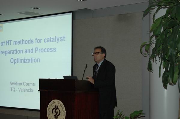 3月28日下午,著名催化專家,西班牙加泰羅尼亞理工大學(Universidad Politécnica de Valencia)教授Avelino Corma Canos 訪問我校,在國際合交流中心作了題為”Use of HT Methods for Catalyst Preparation and Process Optimization“的學術報告,并與在座師生進行了學術交流。中國石油石化研究院院長劉顯發、副總工程師付興國,吉林大學于吉紅教授等與會參與交流。
