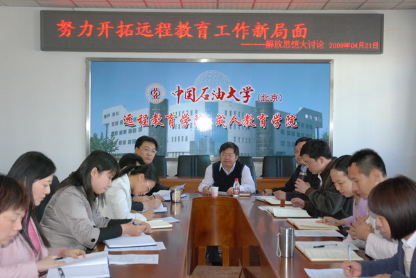 本次解放思想大討論的主題是“推進科學管理,提高服務質量,增強創新能力,開拓學院工作新局面”。會上,院長張云祥首先向大家解讀了遠程教育學院、成人教育學院辦學定位和辦學基本原則的討論稿。黨員同志們和各部門負責人結合學院具體工作實際,集思廣益,暢所欲言,對學院未來的辦學定位和辦學原則達成了共識。在此基礎上,同志們進一步探討了如何將遠程學院的管理和服務有機結合以提升服務質量,并總結了學院在未來發展過程中應該注意的突出問題和應對辦法等。