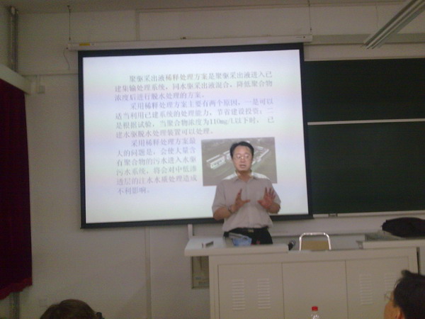 在講座中,李杰訓(xùn)講述了聚合物驅(qū)的基礎(chǔ)知識(shí),分別介紹了聚合物配制、母液輸送和注入等相關(guān)的工藝技術(shù),聚合物驅(qū)采出液、采出水的處理工藝以及聚合物驅(qū)的應(yīng)用前景和發(fā)展方向。