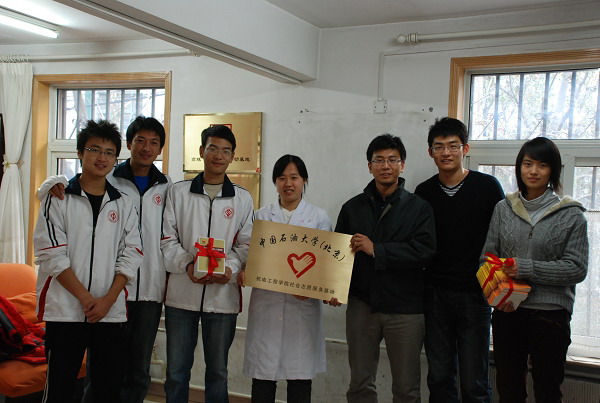 西城區(qū)月壇敬老院現(xiàn)有老人50人,隨著社會(huì)老齡化的加劇,敬老院規(guī)模的逐步擴(kuò)大,工作人員出現(xiàn)短缺。在中華慈善總會(huì)、西城區(qū)民政局的協(xié)調(diào)和大力支持下,中國石油大學(xué)(北京)機(jī)電工程學(xué)院社會(huì)志愿服務(wù)基地建成,自2009年6月機(jī)電學(xué)院第一批志愿者赴敬老院進(jìn)行志愿活動(dòng)起,機(jī)電工程學(xué)院將定期派出志愿服務(wù)者在月壇敬老院做義工服務(wù),并在每年的寒暑假進(jìn)行社會(huì)實(shí)踐活動(dòng)。