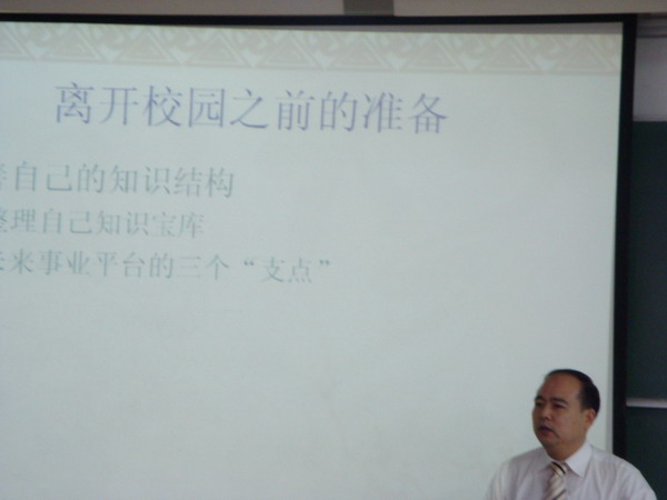 孫家祺先生從就業(yè)準備、面試、工作心態(tài)、與人相處等多個角度闡釋了他對職業(yè)規(guī)劃的理解,其多年的外企職場歷練經(jīng)驗對于即將步入職場的畢業(yè)生們大有裨益。演講由“離校前的準備” 、“進入職場的心態(tài),與人相處”和“規(guī)劃職業(yè)生涯,提高自我” 三個部分組成,孫家祺先生博古通今,通過一些生動形象的人物故事以及俗語閑談,形象地述出職業(yè)規(guī)劃的要素,并在其中穿插為人處世的道理,告誡在場的大學(xué)生們在規(guī)劃職業(yè)生涯的同時不要喪失做人的原則以及自己最初的目標與理想。孫家祺先生還就如何投簡歷、面試的言談和著裝、與上下級的相處等一些細節(jié)做了詳細的介紹與講解,內(nèi)容深入淺出、詳細全面。