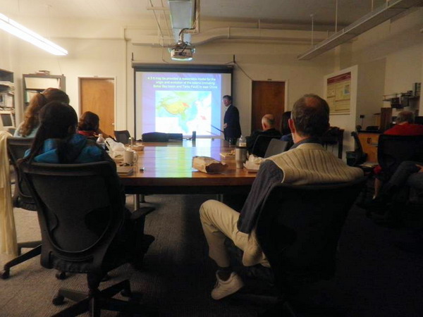 2010年1月20日,在UCLA(University of California, Los Angeles)訪問的資源與信息學院童亨茂副教授,因其在斷層模型研究的原創性工作,在參加2009年GSA(美國地質協會)年會(在美國Porland召開)和AGU(美國地球物理聯合會)年會(在美國舊金山召開)后,應著名教授An Yin(尹安)的邀請,作了題為“A new math-mechanical model of brittle faulting: theory, analog modeling and geologic application” (脆性斷層作用新的數學力學模型:理論,相似實驗和地質應用)的學術報告。報告后進行了熱烈的討論。其中另外還有兩個中國的訪問學者(來自中國地質大學和中國地質科學院)也參加了本次報告會。