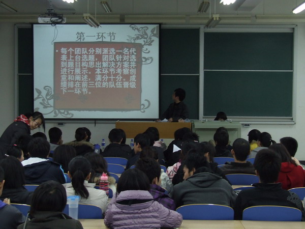 比賽分為初賽和復(fù)賽兩個(gè)環(huán)節(jié),由每班選派五人,共組成充滿(mǎn)活力的七支隊(duì)伍參賽。初賽中各組隨機(jī)抽取題目,并針對(duì)抽中的命題策劃設(shè)計(jì)創(chuàng)意營(yíng)銷(xiāo)方案。各組選手八仙過(guò)海,各顯其能,展現(xiàn)形式多種多樣,語(yǔ)言風(fēng)趣幽默,構(gòu)思巧妙新奇,將“向奧巴馬推銷(xiāo)豆汁”,“租個(gè)盒子來(lái)創(chuàng)業(yè)”,“沙漠火鍋”,“推銷(xiāo)功能性蠟燭”等營(yíng)銷(xiāo)命題演繹得精彩紛呈。決賽環(huán)節(jié)中,初賽勝出的三個(gè)小組針對(duì)固定命題––“一個(gè)被咬過(guò)的蘋(píng)果”進(jìn)行現(xiàn)場(chǎng)營(yíng)銷(xiāo),以發(fā)散的思維和科幻的視角,給人耳目一新的感覺(jué),配以評(píng)委嘉賓的精彩點(diǎn)評(píng),將競(jìng)賽的氣氛推向高潮。