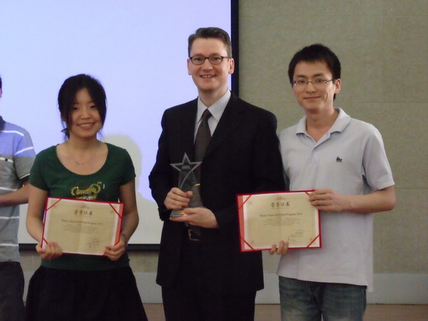 中國能源戰略研究中心執行主任王震出席演講會并致辭。普氏中國能源市場高級總監華大威先生詳細地介紹了普氏的運作,并對獲得面試機會的同學表示祝賀,以及對在座的同學表達了殷切的希望。華大威先生宣布,經過論文匿名評審和面試兩個環節,最終由工商管理學院研究生09級金融專業學生王天然和周芳共同拔得頭籌,獲得了去新加坡普氏能源資訊實習的機會。