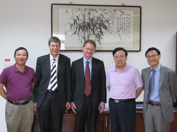 校長張來斌在辦公室會見了客人,共同探討了雙方可能的合作領域。客人們介紹了殼牌在中國的業(yè)務情況,并表達了在已有合作基礎上進一步深化合作的意愿。地球物理與信息工程學院院長肖立志正式邀請Smit博士擔任物信學院客座教授,Smit博士愉快地接受了邀請。