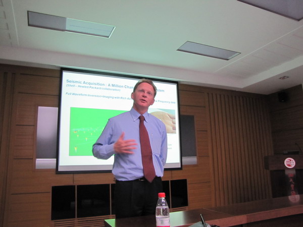 訪問期間,Smit博士為學校師生作了題為“Fuelling the Future: Energy Challenges Driving New Geoscience”的報告,受到熱烈歡迎。報告會后,肖立志教授,長江學者、973首席科學家王尚旭教授,測井專家陶果教授等陪同客人參觀了油氣資源與探測國家重點實驗室物探與測井領域的部分設施,引起了客人的濃厚興趣。