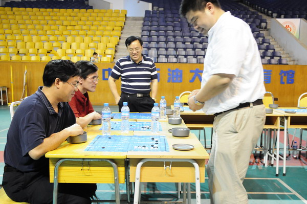 當前位置: 首頁» 院系經緯 張文東等圍棋國手應邀與石大師生進行棋藝聯誼 發布時間:2010-06-21 | 來源:體育教學部 | 瀏覽量: 6月20日下午,中國棋院張文東九段、王磊八段和劉菁八段三名圍棋國手應邀到中國石油大學與師生進行棋藝聯誼活動。活動在體育館舉行,近三十名師生與三位國手手談聯誼,活動持續了近三小時,氣氛專注而輕松。在幾位國手的熱情指導下,師生們獲益匪淺。 校長張來斌、副校長徐春明參加了本次活動。徐春明和中國棋院圍棋部主任張文東均表示,將進一步加強交流和合作,做好圍棋在高校的推廣和發展。 分享到: 排行榜 薦讀 中石大召開2024年全面從嚴治黨工作部署會暨... 對口支援中國石油大學(北京)克拉瑪依校區工作... 中石大獲評 “昌平區學習型示范高校” 中國石油大學2022年十大新聞揭曉 新年賀詞 | 雄關漫道 惟有登攀