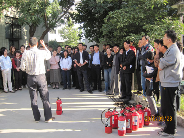 活動中,校保衛處相關負責人到現場為教職工介紹了近年來高校消防安全事故的典型案例,對發生火災后的滅火常識、消防要求、逃生手段和方法進行了深入講解,并對如何正確使用滅火器進行了現場操作示范。隨后,教職工們進行了滅火器實噴演習。