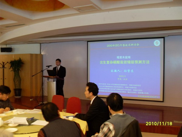 11月18號,SEG(中國) 在夢溪賓館組織召開了2010年第三屆午餐技術研討會。中國石油大學信息學院地質地球物理綜合研究中心主任孫贊東教授應邀為此次會議主講人,主講題目為《次生復雜碳酸鹽巖儲層預測方法》。與會人員來自于中石油東方公司、中石油勘探院、中石化研究院、中化勘探開發公司、斯倫貝謝、帕拉代姆及SEG學生會員等共70多人。