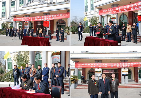 11月12日,中國石油大學與天津市大港儀表公司共建“產、學、研”基地揭牌儀式在大港儀表公司舉行,機械學院院長王德國、信息學院黨委書記王智廣等一行7人參加了此次揭牌儀式,大港儀表公司董事長劉學合、大港區科委負責人等企業和地方代表出席了揭牌儀式。