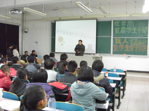 為適應當前學生干部隊伍建設中的新特點,轉變傳統的學生干部培育方式,創新性的開展學生干部的自我教育和自我提高,以提高學生干部隊伍的整體水平,理學院首屆學生干部達人show暨學生骨干實訓于12月3日晚在三教109成功舉辦。