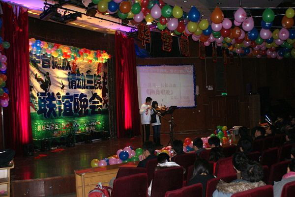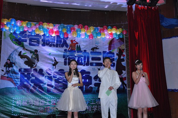 晚會上,三個學院都派出了明星陣容,三位主持人畢勝、韓璐遙、陳夢風趣幽默的主持風格另全場笑聲不斷,實力派唱將苗麗莎一曲《聽?!方o觀眾帶來無限的驚喜,校園歌手大賽冠軍陳渝、申奇、高晨陽和三校英文歌曲大賽冠軍姜聰、聶昕的加入,將晚會氣氛一次次推向高潮。晚會進行過程中,還穿插著與觀眾的互動環節,現場抽取了三名幸運觀眾并給予了豐厚的獎品,使整場晚會呈現一片歡樂的海洋。最后,在優美而溫暖的音樂聲中晚會圓滿結束。
