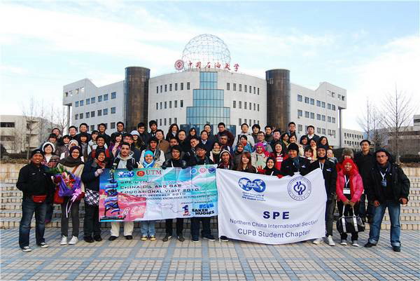 在訪問期間,校長(zhǎng)張來斌、副校長(zhǎng)徐春明以及石油工程學(xué)院院長(zhǎng)陳勉等學(xué)院負(fù)責(zé)人相繼會(huì)見了UTM大學(xué)師生一行,并與之合影。石大SPE學(xué)生分會(huì)與UTM大學(xué)師生代表在國際會(huì)議中心306室舉行交流座談會(huì),就兩國飲食文化差異、大學(xué)生心理健康、及未來新能源發(fā)展等話題進(jìn)行了交流。UTM大學(xué)學(xué)生代表還在國際交流中心306室做了精彩報(bào)告,展示了他們?cè)?SPAN lang=EN-US>UTM大學(xué)的學(xué)習(xí)、生活狀況。