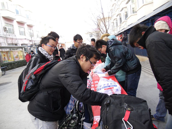 12月15日下午,“J09·愛·永恒”基金會攜手信息學院青年志愿者協會、信息學院計算機本07黨支部、信息學院本09黨支部在潤杰學生公寓食堂門口開展了“牽手 讓這個冬天亦溫暖”捐贈衣物活動。
