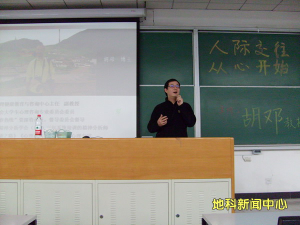 12月20日晚,由地球科學學院學生會生活部在三教樓舉行了主題為“人際交往,從心開始”的 大型講座,邀請到中國人民大學知名的心理學老師胡鄧主講。