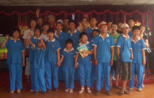 該校隸屬于北京市紅十字會,于1998年春經北京市政府機構編制委員會批準成立,是由熱心于弱、殘人教育康復事業的王麗娟校長投資創辦。該校學生都是智障兒童,不同于一般的肢體殘疾、聾啞殘疾患者,他們由于大腦受過損傷,智力比正常人低。殘障兒童給家庭帶來很大傷害,他們的父母離婚率很嚴重,高達60%。這些智障兒童,有些遭到父母的拋棄,有些整天被鎖在家里,有些流浪街頭,是社會中的弱勢群體中弱勢。其實,智障兒童通過受到一種特殊的教育,完全可以自食其力,也能為社會為國家做貢獻。但智障兒童受教育率很低,大約是千分之一,所以需要社會更多的關注。人文學院實踐組成員積極參與該次獻愛心活動,協助孩子們開展了一系列的智力恢復訓練。
