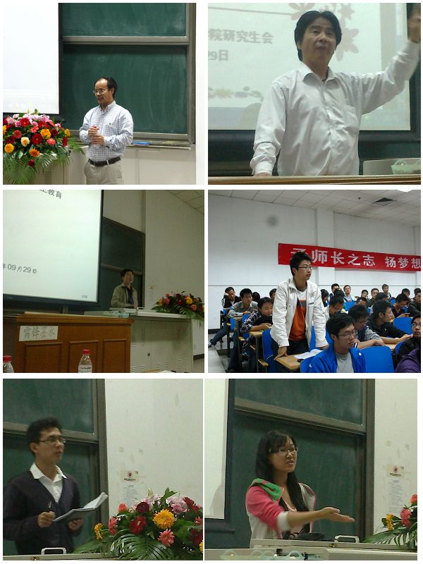 學生代表博士生王英及研究生孫鵬超也分別發言,告訴同學們如何充分利用學校的各項資源學習,還傳授了一些面試技巧。會上,同學們踴躍提問并得到了耐心的解答。