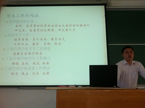 10月16日,石大商學院在三教101舉行學生骨干培訓。學院黨委副書記羅曉燕、學院分團委老師孫凈宇、郭峰及各年級輔導員組成了培訓講師團為參訓者培訓。本次培訓由郭峰主持。