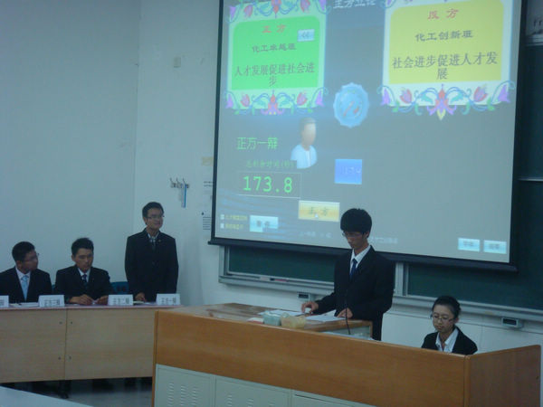 10月12日晚,“化工學(xué)院辯論賽——看我七十二辯”在三教306圓滿落幕。上一屆學(xué)院辯論賽“優(yōu)秀辯手”李建建、袁琳、鄭達(dá)擔(dān)任這次比賽的評委。辯論正方化工卓越班和反方化工創(chuàng)新班,分別持觀點(diǎn)“人才發(fā)展促進(jìn)社會進(jìn)步”和觀點(diǎn)“社會進(jìn)步促進(jìn)人才發(fā)展”展開辯論。