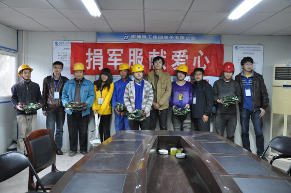 石大地學院學生向學生活動中心建設者“捐軍服獻愛心”