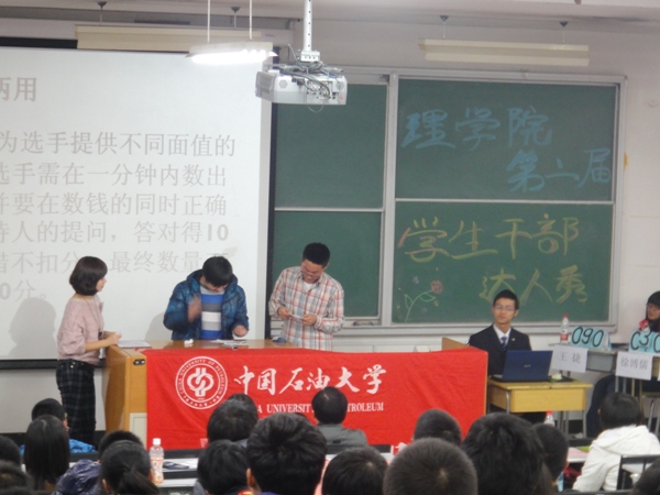 當前位置: 首頁» 院系經緯 石大理學院舉辦第二屆學生干部達人秀暨學生骨干實訓 發布時間:2011-12-02 | 來源:理學院 | 作者:溫媛 | 瀏覽量: 12月1日晚,第二屆學生干部達人秀暨學生骨干實訓決賽在三教105舉辦。校團委老師周玉成、人事處勞資科科長何漢挺出席了本次活動。 本次活動自11月中旬開始,最終有12位學生骨干晉級決賽。決賽共分為初露鋒芒、一心兩用、爭分奪秒、風險提速、占領陣地、終極對抗、才藝展示7個環節。選手們敏捷的思維、激情的辯論、精彩的才藝贏得了現場觀眾的陣陣掌聲和連連喝彩。最后,理學院文藝部部長高蒼龍同學獲得一等獎。 分享到: 排行榜 薦讀 中石大召開2024年全面從嚴治黨工作部署會暨... 對口支援中國石油大學(北京)克拉瑪依校區工作... 中石大獲評 “昌平區學習型示范高校” 中國石油大學2022年十大新聞揭曉 新年賀詞 | 雄關漫道 惟有登攀