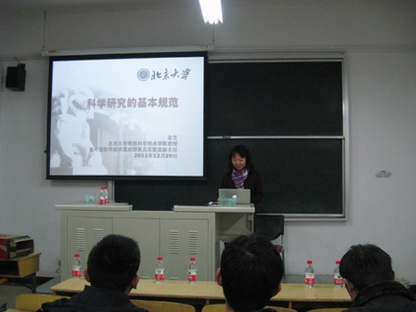 金芝教授首先講解了什么是科學精神,在學術研究中怎樣保證科學求真,并詳細舉例說明在學術研究過程中應避免哪些科學不端的行為。隨后,她重點闡述了科學規范的內容,詳細剖析了整個學術研究過程中每個階段應怎樣保證科研求真,以及需要規范的各個方面。她指出,年輕學者應誠信品行,嚴謹作風,努力做一名合格的科學工作者,保證科學求知的過程真實、規范。