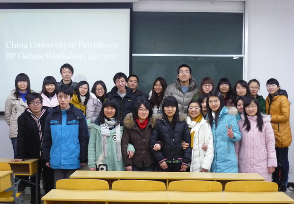 日前,中國石油大學英語演講與辯論精英班的學生結束了為期六天的英語辯論培訓。本次培訓由英語辯論國際裁判、國內首席英語辯論培訓師、“中國石化杯”北京英語辯論公開賽裁判長鄭博主講,同時應邀前來的還有來自北京外國語大學及北京航空航天大學的全國辯論賽獲獎辯手。