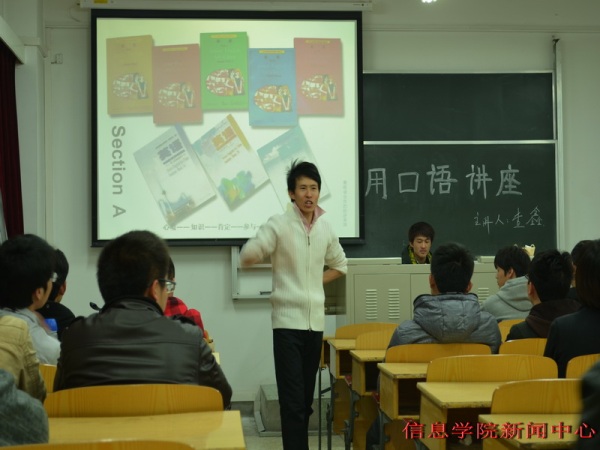 3月16日晚,信息學院社團聯合會在二教212舉辦“英語在用”講座。青年演講家查鑫擔任本次講座的主講嘉賓。
