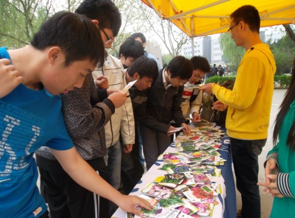 4月22日為世界地球日,為響應今年世界地球日的主題“珍惜地球資源,轉變發展方式”,石大地球科學學院學生會于4月19日在北校區南廣場舉辦“綠色種子遍校園”環?;顒印,F場活動以“廢品換花種”為主要形式,同學們用平時積攢的塑料瓶、廢舊電池、舊書稿等物品兌換種類多樣的花種,現場工作人員還贈送環保知識卡片給兌換的同學并現場教授如何用塑料瓶制作花盆以及如何養殖花卉等知識?;顒游嗽S多熱心環保的同學參與,大家紛紛表示,希望以此活動為契機,讓綠色低碳的生活理念深入大家的生活,讓綠色充滿校園的每個角落。