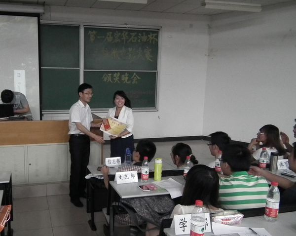 5月7日,由中國石油大學、中國政法大學和北京化工大學聯合主辦的第一屆“宏華石油杯”三校微電影大賽頒獎晚會在石大三教105圓滿結束。化工學院團委老師張延港出席晚會并為獲獎選手頒獎。