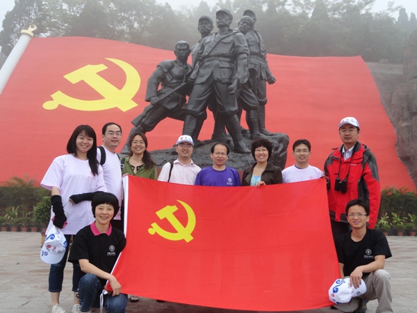 在狼牙山五壯士的紀念像前,支部全體黨員向黨組織宣誓,并合影留念。莊嚴宣誓之后,來到了“狼牙山五勇士陳列館”參觀,認真聽取了講解員生動的講述,仿佛又回到了六十幾年前那個血雨腥風的歲月。黨員們回想革命前輩們前仆后繼地黨奉獻自己的感人事跡,不禁感慨萬分。
