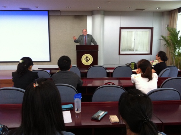 講座上,馬卡姆柯林斯用生動的比喻分析了最近金融危機的原因。結合中國外貿交易的現狀對人民幣價值是否被低估以及美國當前的能源領域的金融狀況,他做了簡要評析。最后,馬卡姆柯林斯就同學們提出的問題進行了講解,同學們紛紛表示受益匪淺。