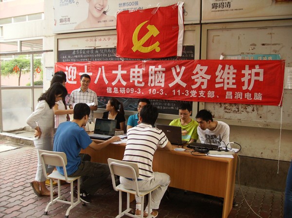 5月20日,石大地球物理與信息工程學(xué)院研09-3、10-3、11-3黨支部在陽光公寓門廊聯(lián)合開展了“迎十八大電腦義務(wù)維護(hù)”活動。活動從上午九點(diǎn)開始,黨支部成員積極踴躍參與,活動中計算機(jī)科學(xué)與技術(shù)專業(yè)的學(xué)生們?yōu)閺V大學(xué)生提供了電腦清潔,Windows7系統(tǒng)安裝,電腦軟件升級,殺毒軟件安裝等免費(fèi)義務(wù)服務(wù),得到了廣大學(xué)生們的歡迎。通過本次活動,信息學(xué)院的黨員們用實(shí)際行動鍛煉了黨性,踐行了“為人民服務(wù)”這一理念,增強(qiáng)了組織凝聚力,用自己的實(shí)際行動迎接了黨的十八大。
