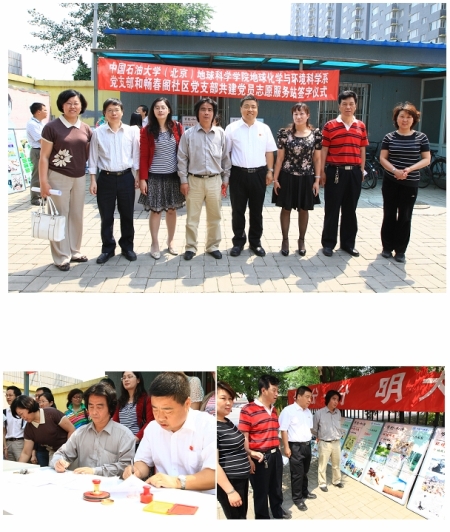 社區(qū)與高校聯(lián)合共建黨員志愿服務(wù)站是發(fā)揮高校資源優(yōu)勢(shì)、服務(wù)社區(qū)建設(shè)的一種探索,地球化學(xué)與環(huán)境科學(xué)系黨支部本著發(fā)揮環(huán)境科學(xué)學(xué)科教育資源優(yōu)勢(shì),服務(wù)地方環(huán)境建設(shè)需要的原則,與暢春閣社區(qū)黨支部經(jīng)過(guò)多次協(xié)商,達(dá)成在暢春閣社區(qū)共建黨員志愿服務(wù)站的共識(shí),并明確了黨員志愿服務(wù)站的服務(wù)目標(biāo)、形式與內(nèi)容,即以暢春閣綠色社區(qū)建設(shè)為目標(biāo),以社區(qū)環(huán)境建設(shè)為服務(wù)對(duì)象,以雙方黨支部、黨員為開(kāi)展服務(wù)的主體,通過(guò)開(kāi)展形式多樣的環(huán)境宣傳教育活動(dòng),使社區(qū)居民了解環(huán)境科學(xué)的基本知識(shí)和當(dāng)前人類面臨的環(huán)境形勢(shì),認(rèn)識(shí)自己的環(huán)保權(quán)利和責(zé)任,增強(qiáng)環(huán)境意識(shí),提高參與環(huán)境保護(hù)的能力,在社區(qū)形成“人人崇尚綠色生活和綠色消費(fèi),關(guān)心環(huán)境質(zhì)量,積極監(jiān)督環(huán)境執(zhí)法,參與政策制定,從身邊的小事做起,以綠色行為規(guī)范自律”的良好風(fēng)氣。