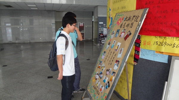 祝愿彩紙板在三教大廳進行了展示。同學們紛紛表示,要借此機會,向所有教育過、關心過他們的恩師表達尊敬和感謝。