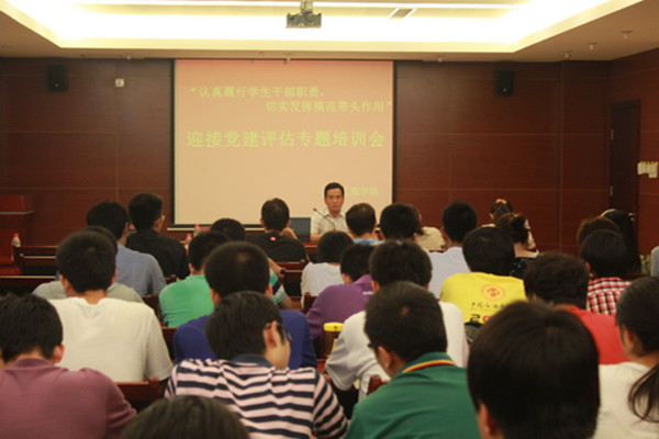 在第二階段的“認真履行學生干部職責,切實發揮模范帶頭作用”專題培訓會上,學院黨務秘書介紹了學院迎接黨建評估前期各項準備工作以及目前攻堅階段的任務。最后學院團委負責老師號召全體團員青年們要以飽滿的熱情,以主人翁的姿態,認真對待迎評工作,以實際行動參與迎評,充分展示團員青年的蓬勃朝氣與風采。