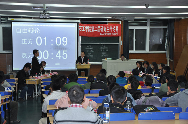 10月17日晚,石油工程學院第二屆研究生辯論賽總決賽在一教104教室舉行。比賽邀請了學院團委指導老師鄧嵩、學院研會主席王暉和第一屆辯論賽冠軍隊代表竇祥冀擔任評委。
