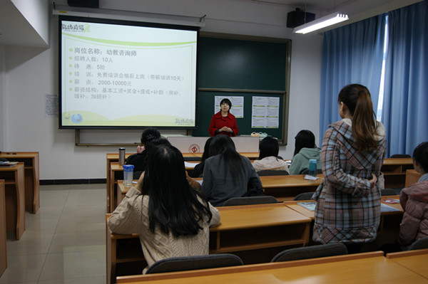 能動英語是國內(nèi)著名的系統(tǒng)化少兒英語培訓(xùn)機構(gòu)。能動英語的校長和人力資源負(fù)責(zé)人給同學(xué)們介紹了其招聘崗位、要求、薪資等信息,并與同學(xué)們進行問答交流和現(xiàn)場面試等互動。