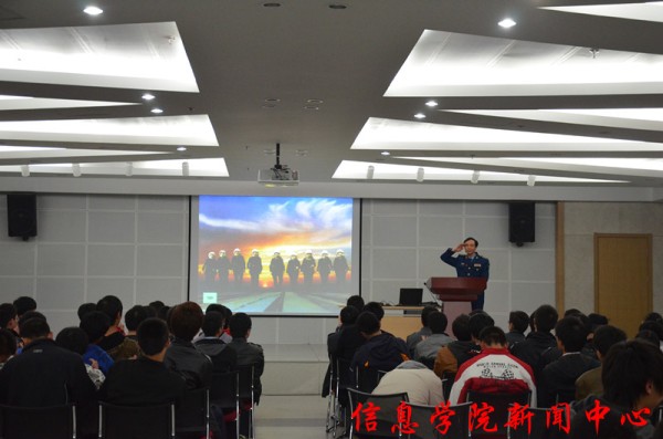 11月2日晚,由石大地球物理與信息工程學院主辦、信息社團聯合會承辦的“我們的空軍”專題報告會在學生活動中心舉行。空軍指揮學院教授、空軍大校李國強受邀主講。信息學院黨委副書記莊玉琳以及各年級輔導員出席了本次報告會,報告會由輔導員仝澤民主持。
