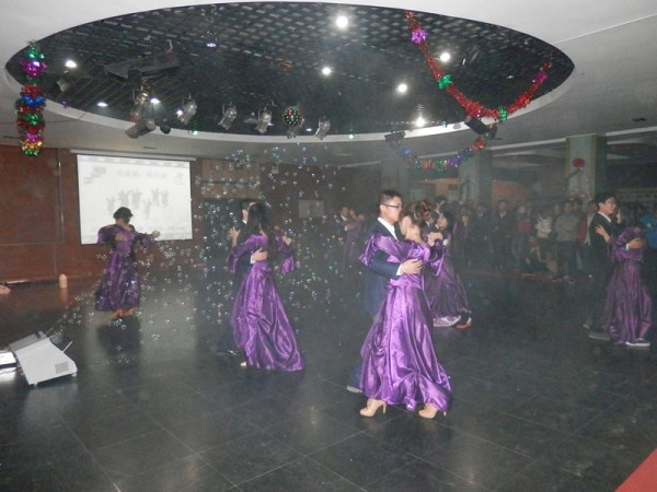 在Mark-today樂隊的架子鼓表演的氣氛下,云中漫步舞會正式開場。舞曲《江南style》配上舞蹈,讓大家群情振奮;街舞《history》舞出了同學們的青春和激情;華爾茲和探戈營造出了一種溫馨的情調;舞蹈《最炫民族風》,熟悉的旋律熱情不減;留學生的舞蹈《Black and White》拉近了同學間彼此的感情,還有舒緩搖擺的“平四”、“慢三”,全場舞會的氣氛在一幕幕的驚喜中升溫。此外,還有竹天魔術社同學帶來的精彩魔術和中場游戲的互動環節,最后舞會在全場參與的兔子舞輕快愉悅的節奏下結束。