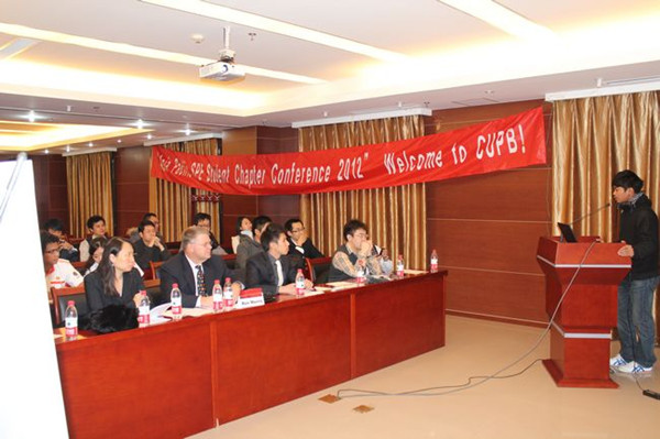 12月19日至21日,SPE亞太區學生分會理事會(SPE Asia Pacific Student Conference, APSC)在中國石油大學舉行,會議由石大SPE學生分會主辦,來自北京大學、中國地質大學(北京)和中國石油勘探開發研究院,以及馬來西亞理工大學(UTM)和馬來西亞石油理工大學(UTP)SPE學生分會的主席共20余名代表參加了本次會議,SPE北亞太區總監、洛克石油(渤海)公司主席Ron Morris先生應邀出席會議。