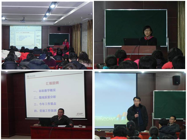 分管本科教學的外國語學院副院長徐方富以“深化教學改革,全面提高本科人才培養質量”為題,介紹了大學英語以及英語專業教學面臨的諸多挑戰,明確了今年本科系統化教學改革的方向和重點。隨后,外國語學院副院長趙秀鳳以“春的呼喚”為題,從強化師資隊伍建設、加強學科平臺建設、提高教學質量以及建立科研激勵機制等四個方面,對如何實戰興院進行了解讀。學院黨委副書記鄭世高主要談了如何加強學風建設以及提高就業率,希望所有任課老師和學生工作干部緊密配合,共同教育好學生,并積極為學生提供就業信息。外國語學院黨委書記肖中瓊作了總結發言。她特別強調了教風、學風的建設,要求各位老師“既已為人師,則行須為世范”,同時殷切希望外語學院全體同仁,同心同德,全身心地投入到外語學院的各項工作中來。