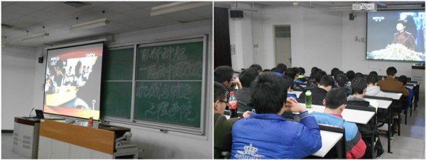 3月22日晚,石大機械與儲運工程學院在三教207舉辦大學生百科講壇,放映2012年感動中國頒獎晚會。