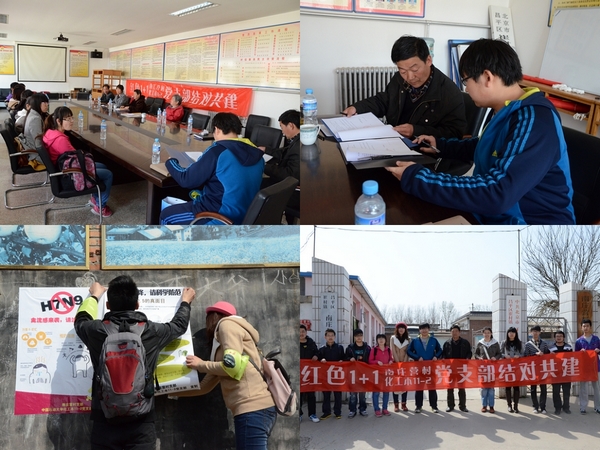 兩個支部召開了共建交流會。會上,雙方各自介紹了支部的情況,積極交流、增進了解,還明確了今后共同工作的目標。會后,化學工程學院本科2011級2班黨支部的同學們在村中張貼了關于環境、衛生等方面的宣傳海報,同時為村民們介紹了PM2.5和H7N9新型禽流感病毒,并介紹了日常的防范措施。
