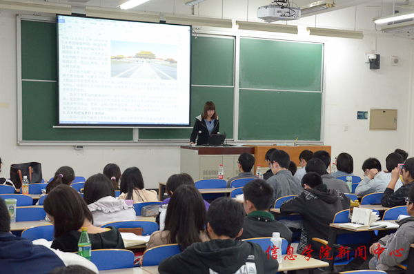講壇展示了兩項地球物理與信息工程學院“北京地域文化學習研討”活動十佳項目。第一位地域文化研究宣講人以ppt的形式向大家展示了題為“北京小吃與飲食文化”的研討成果,并講述了北京小吃的特點、歷史、現狀、地位以及與飲食文化的聯系等,在宣講過程中她就大家所喜愛的小吃與同學們進行了互動。第二位項目宣講人則對故宮的建筑文化做了講述。她通過視頻配合文字對故宮的布局、建筑特色、文化內涵進行了宣講,對太和殿做了詳細介紹,并對故宮的現狀和保護表達了自己的觀點。