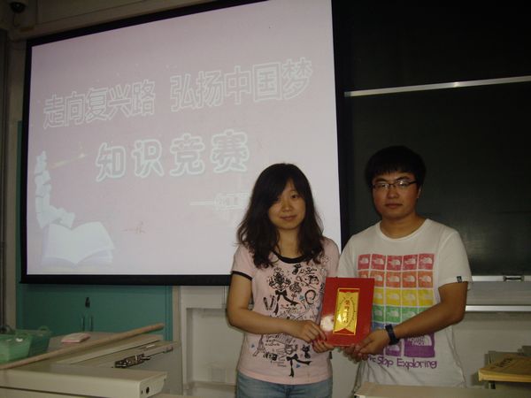 5月8日,化工學院研10-3黨支部舉辦“走向復興路,弘揚中國夢”知識競賽。競賽之前,黨支部做了充分的動員,積極準備、認真參賽,本次比賽分為必答題、搶答題和風險題三個環節,最后總計得分最高的隊伍獲勝。本次活動以知識競賽為平臺,在黨支部和班級內興起了學習宣傳貫徹黨的十八大精神的高潮。