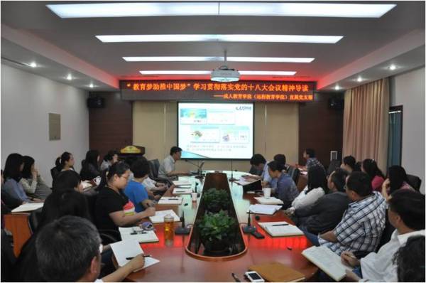 通過宣講,黨員和積極分子更深刻地領會了黨的十八大關于“中國夢”的論述和涵義。在討論環節,大家紛紛表示,實現“中國夢”要放眼未來,立足現實,從做好本職工作入手,為學院“成為學員滿意、員工驕傲、社會推崇, 極具創造力和影響力的開放教育學院 ”的共同愿景而努力。
